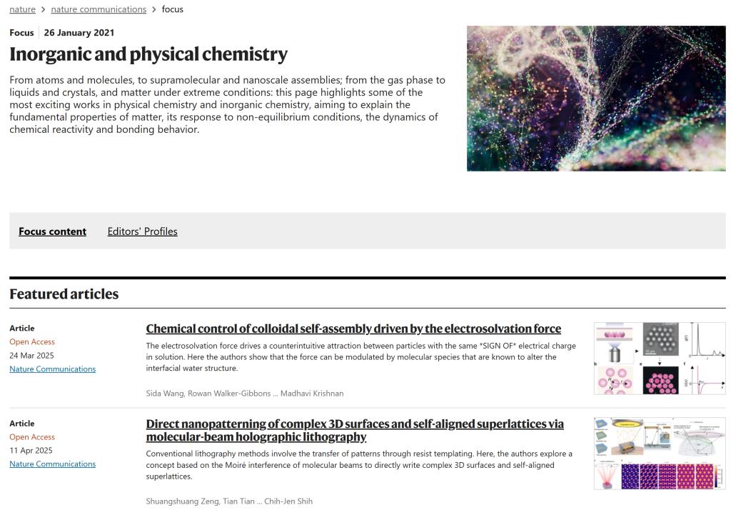williamhill中文曾双双教授团队联合加拿大阿尔伯塔大学Tian Tian教授、瑞士苏黎世联邦理工学院Chih-Jen Shih教授团队,合作开发了一种适用于多种材料的纳米图案化新方法。该研究成果于2025411日发表在《自然-通讯》(Nature Communications,题为《利用分子束全息光刻技术实现复杂三维表面的直接纳米图案化与自对准超晶格结构的构建》(Direct nanopatterning of complex 3D surfaces and self-aligned superlattices via molecular-beam holographic lithography),并入选编辑推荐亮点论文Editors' Highlights:https://www.nature.com/collections/wtpqpqpgwd),williamhill中文为论文第一完成单位。