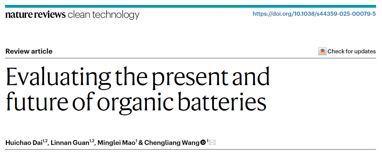 基于大规模储能和可持续发展的需求,有机电池可为商业化锂电池提供强有力补充。然而,经过二十多年的发展,有机电池仍然面临众多挑战,其未来仍充满不确定性。在此情况下,王成亮教授团队受邀在Nature Reviews Clean Technology上撰文,评估有机电池的现状和未来。