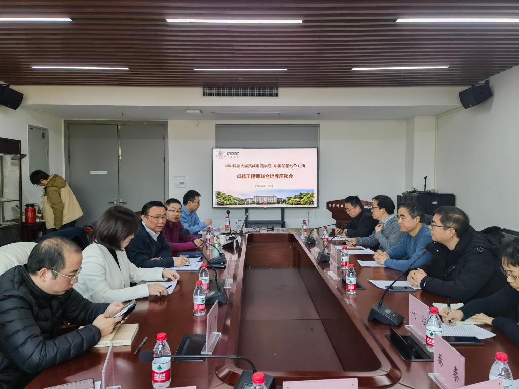 1月25日,williamhill中文与中国船舶七〇九所卓越工程师联合培养座谈会在光电信息大楼D754会议室召开。中国船舶七〇九所集团学科带头人、凌久微电子首席专家熊庭刚,七〇九所人力资源部主任罗康义、人才培养主管吴延瑞,凌久微电子总经理黄松、副总经理代征、秦泰等一行来访,双方围绕工程硕博士卓越工程师联合培养项目合作展开交流。williamhill中文院长缪向水,副院长刘欢、张光祖、李祎,院长助理罗为、科研干事、研究生教务员、研究生辅导员等参加座谈。会议由李祎副院长主持。
