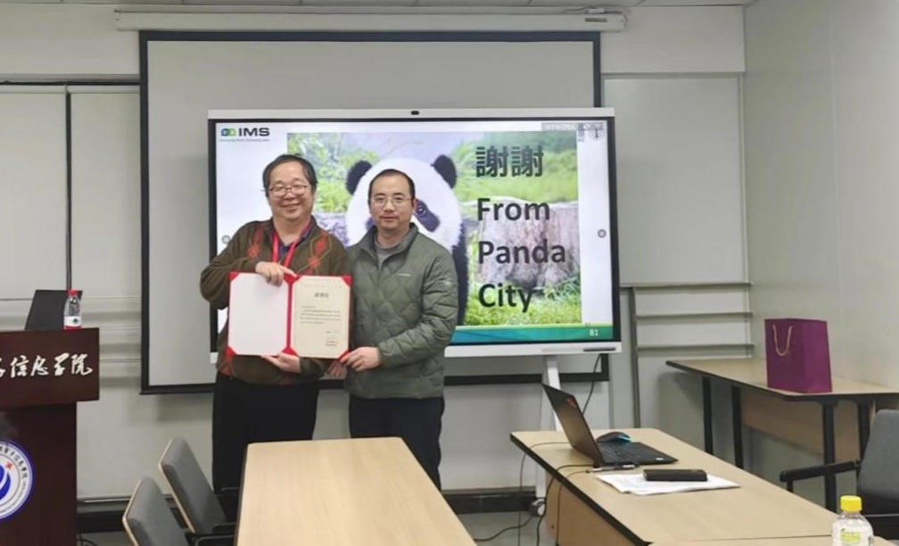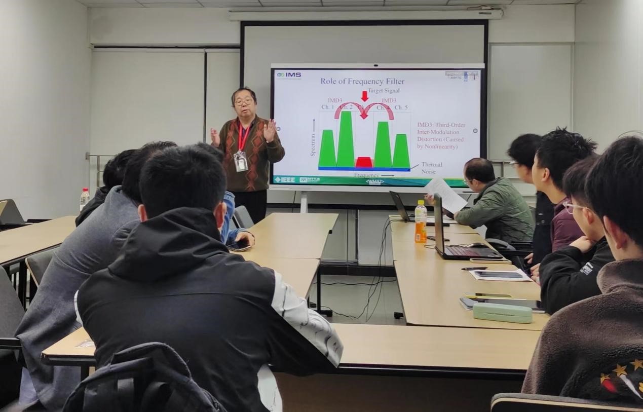 在交流互动环节。橋本研也教授与在场的教师和学生展开了深入的交流和讨论,分享彼此的科研经验和心得。橋本研也教授对于采用铌酸锂/钽酸锂块材的各种SAW类器件的深入研究,为在座的各位老师和同学提供了深刻的启发。罗为教授会后为橋本研也教授颁发了邀请函证书。
