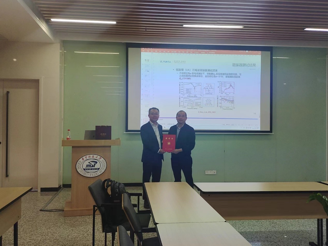 在交流互动环节,左成杰教授与在场的教师和学生展开了深入的交流和讨论,分享彼此的科研经验和心得。左成杰教授对于高频与大带宽滤波器的深入研究,为在座的各位老师和同学提供了深刻的启发。罗为教授会后为左成杰教授颁发了邀请函证书。