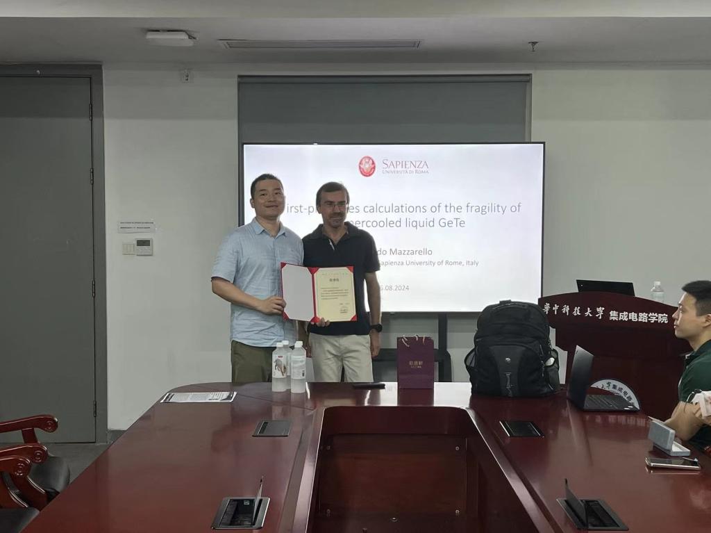 2024年8月26日上午9时30分,应我院徐明教授的邀请,罗马第一大学Riccardo Mazzarello副教授做客“喻园·育芯”讲坛。在光电信息大楼D754会议室为我校师生带来题为《First-principles calculations of the fragility of supercooled liquid GeTe》的相关报告。