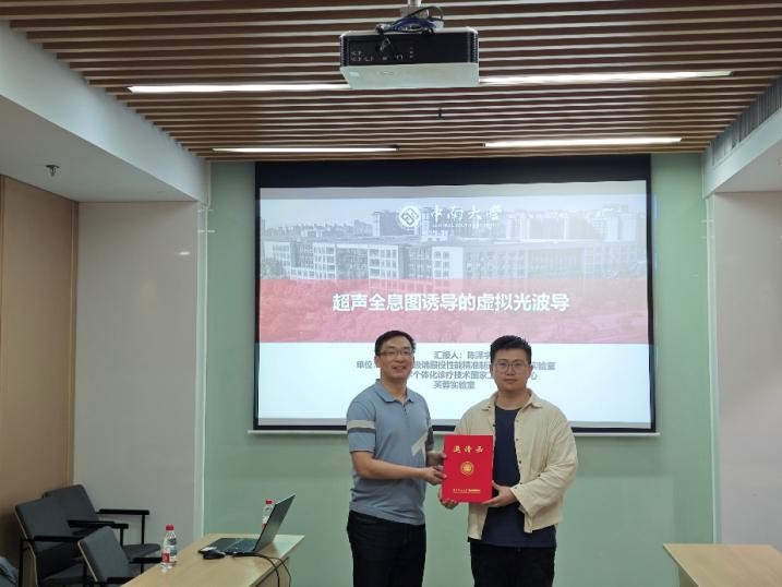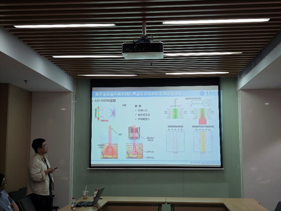 陈泽宇教授从组织中的光学散射带来的问题引入,强调从实际应用需求中发现问题、延伸问题并解决问题的研究理念,并提出了基于全息超声换能器的声全息诱导虚拟活体增强波导。基于聚焦超声增强光波导,设计出孔全息聚焦透镜压电超声换能器,通过靶向治疗验证了聚焦超声对光波导的增强效果。建立了AH-VIEW模型并进行成像系统的搭建,验证了AH-VIEW模型对光声成像图像强度的提升效果。此外,还通过利用虚拟波导3D打印,优化了传统3D打印技术保真度低的问题。通过聚焦超声使光的传播在陈泽宇教授的讲述中,我们可以感受到技术的革新正在突破传统研究现有的瓶颈,实现新的科学和发现。