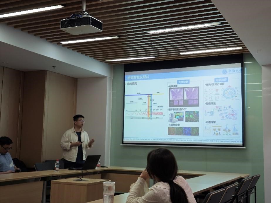 2025年5月12日下午15:00,由我院主办的”喻园·育芯”讲坛第105期在光电信息大楼C115会议室顺利举行。本次讲坛邀请了中南大学陈泽宇教授作报告,题目为《声全息虚拟活体光波导及其应用》。本次讲坛由朱本鹏教授主持。