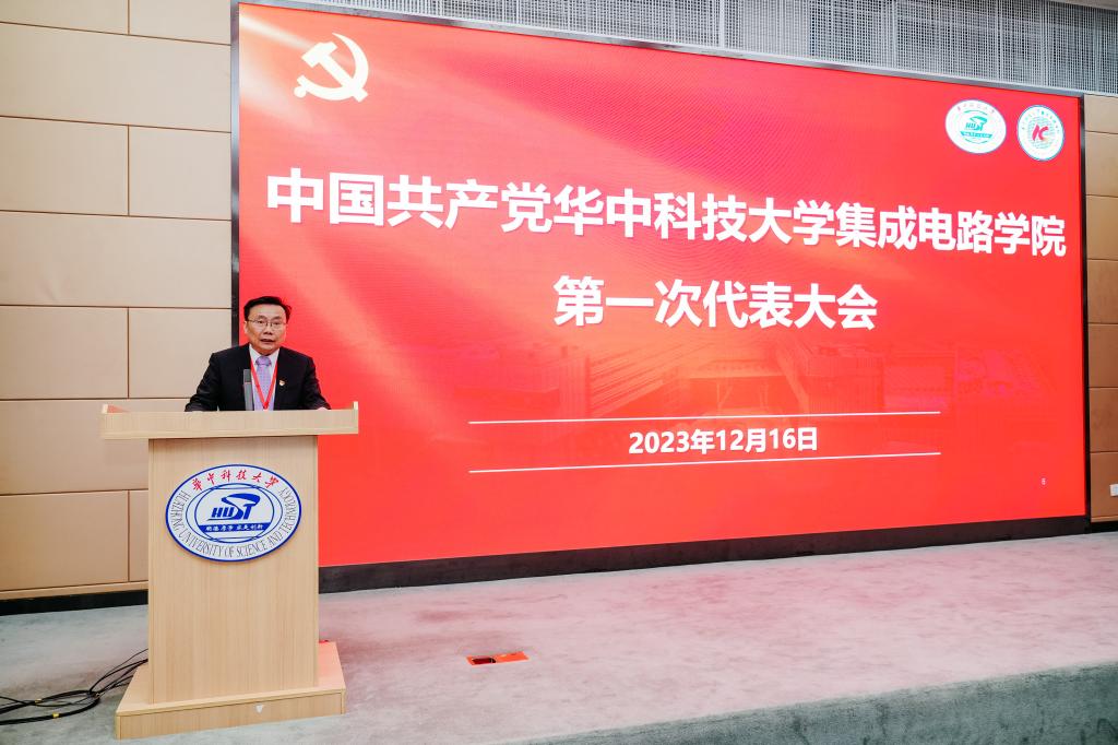 学院院长缪向水主持召开第一次党员代表大会正式会议。学院党委书记刘红军做题为《高举旗帜,追求卓越,产教融合,协同育人 为建设一流的国家williamhill中文努力奋斗》的工作报告。报告回顾了自2022年11月实体化运行以来,在校党委的坚强领导下,学院党委深入学习贯彻习近平新时代中国特色社会主义思想、贯彻落实党的二十大精神,扎实开展主题教育,团结带领全院师生员工,凝心聚力,抢抓机遇,顶天立地,追求卓越,在党的建设和各项事业上取得的显著成绩。认真反思了目前学院党委工作中的不足,明确了在新的发展形势下学院“三步走”的发展战略,并对未来五年学院各项工作做出了新的规划,提出了新的要求。
