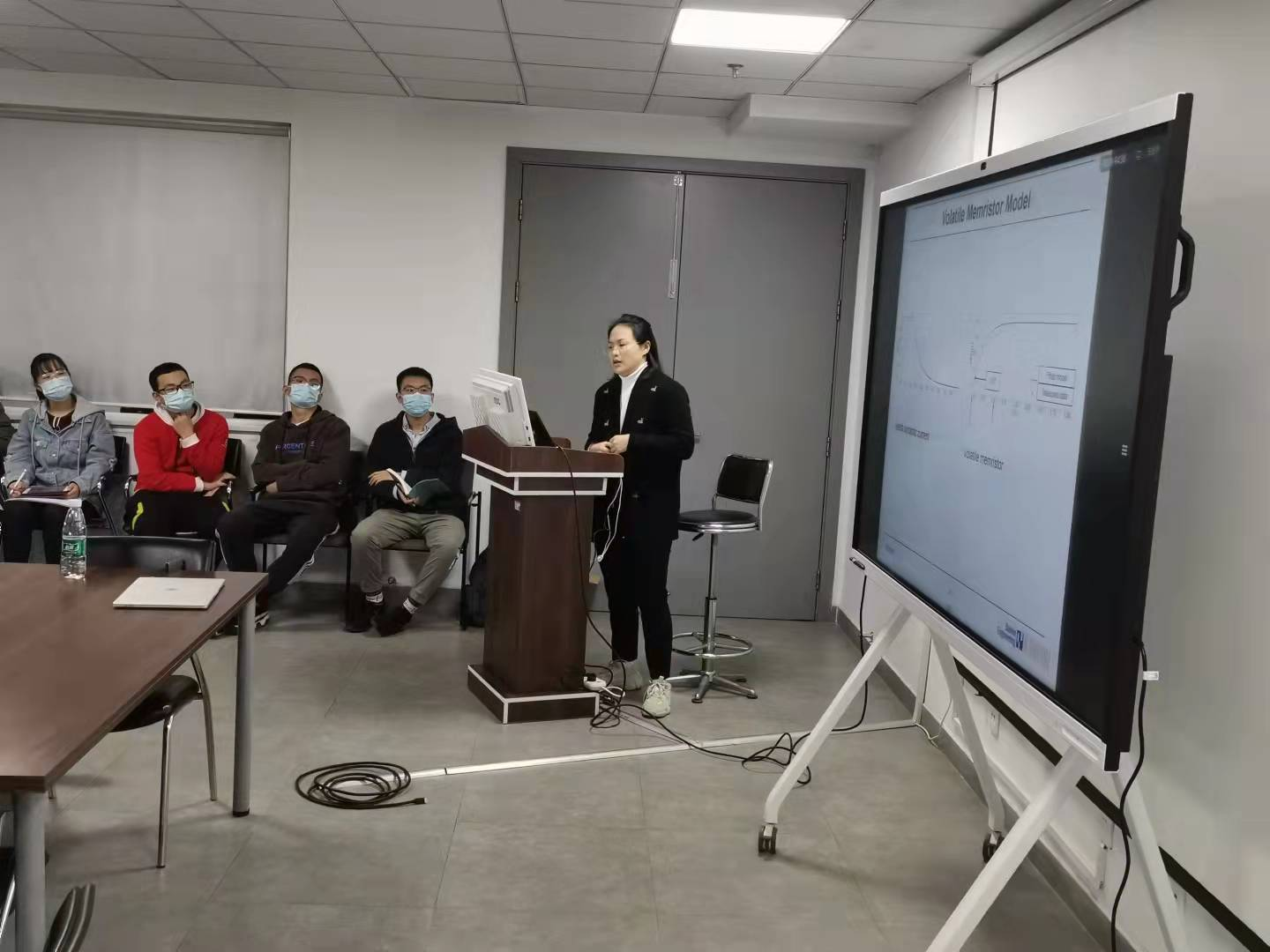 周芃博士的报告聚焦于用于模式识别和听觉皮层处理的忆阻脉冲神经网络(memristive spiking neural network ,MSNN) 。深入浅出的从模式识别、听觉皮层处理等多个维度分析了忆阻器学习的学习功能。同时忆阻器不仅可以用于认知过程如听觉处理,也可以用于基于深度学习的模式识别。重点基于有监督和无监督学习的仿真研究,向我院师生们展示MSNN在神经形态计算中发挥的重要作用。