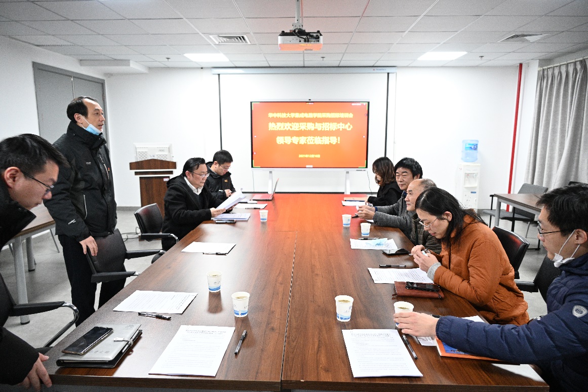 张涛书记首先对采购与招标中心来我院指导工作表示感谢。缪向水院长介绍了集成电路产教融合创新平台的大量设备采购与招标需求,希望借由这次交流能深入地了解学校采购管理制度、运行机制及操作流程,保证平台的管理工作规范化、合理合法。