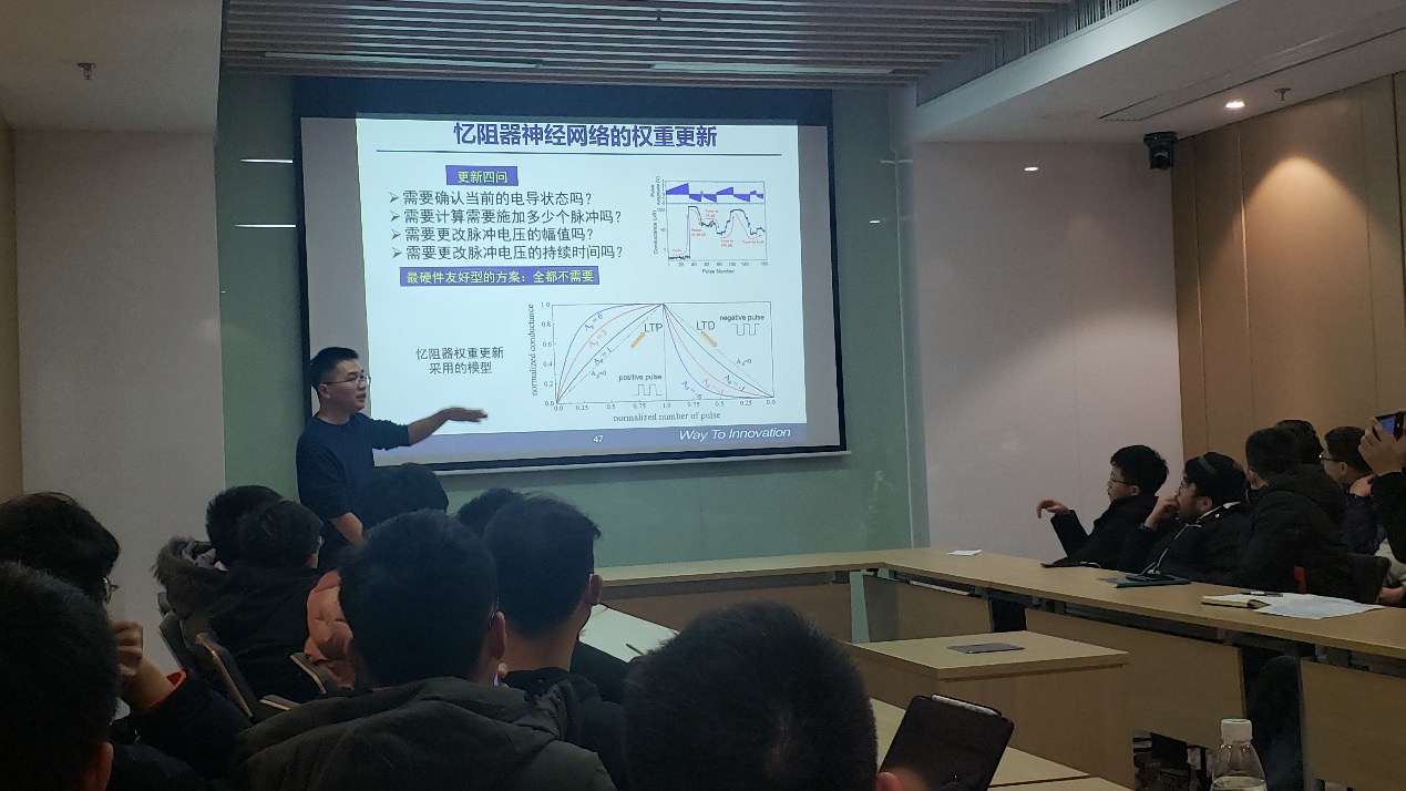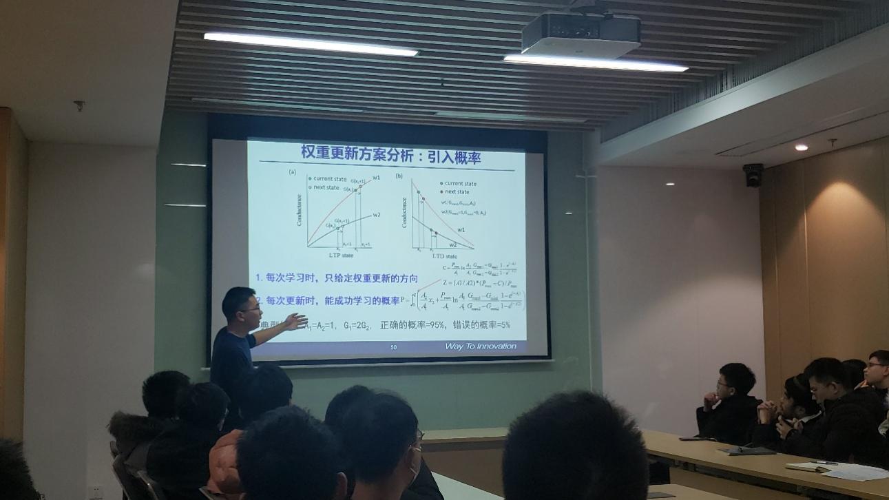 2022年1月4日16时,应我院何毓辉教授邀请,中国科学院-深圳先进技术研究院-医学人工智能中心黄明强副研究员做客第三期“喻园•育芯”讲坛之青年学者沙龙。给我院师生带来题为《忆阻器存内计算:器件-电路-芯片协同优化设计》的学术讲座。