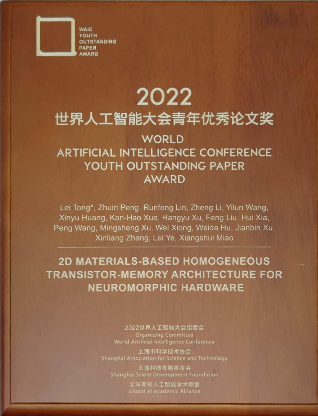 其中,经评选委员会评审,williamhill中文缪向水、叶镭团队的“基于同质器件架构的感算存一体化神经形态硬件”成果荣获2022年世界人工智能大会青年优秀论文奖,博士生童磊(目前在香港中文大学从事博士后研究工作)为该论文的第一作者。该成果创新性地基于二维半导体的硅基同质器件,首次提出了类脑功能的“传感-计算-存储一体化”神经形态芯片架构,实现了光电传感、放大运算、信息存储功能的一体化集成,为突破冯·诺依曼瓶颈和实现类脑智能提供了一种全新思路,相关工作发表在国际知名期刊《science》杂志上。