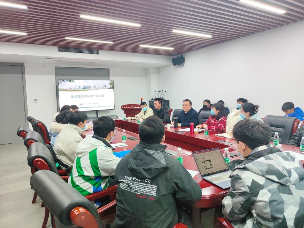 座谈会上,缪院长重点关注了专业实践的相关建议,指出国家集成电路产教融合平台将于年底建成,学院也将更加重视理论教学和专业实践的协同培养,未来每个同学都可以在国家平台制作属于自己的芯片,体验芯片制作的全流程,真正实现“一生一芯”。