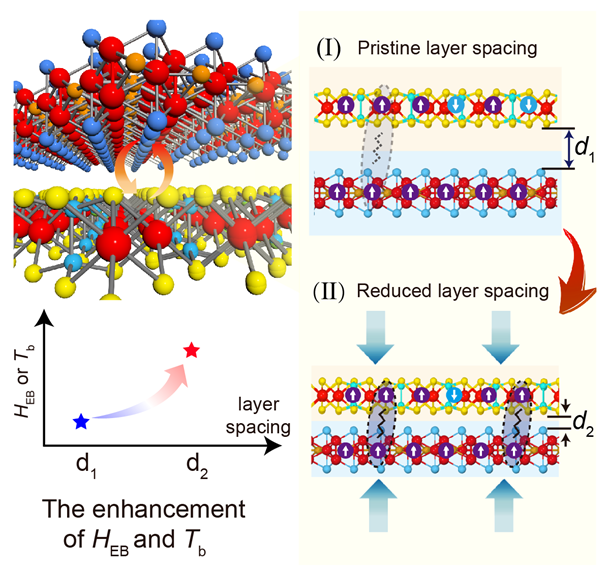 交换偏置(EB)效应是磁数据存储中开发高灵敏度、高稳定性和高密度的自旋电子器件的核心工作原理之一。近年来,二维范德瓦尔斯磁性材料因在自旋电子学和磁存储等方面具有良好的应用前景受到广泛关注。由于弱交换偏置场、低截止温度以及单调的调制手段,严重限制了交换偏置效应在范德瓦尔斯自旋电子器件中的应用。
