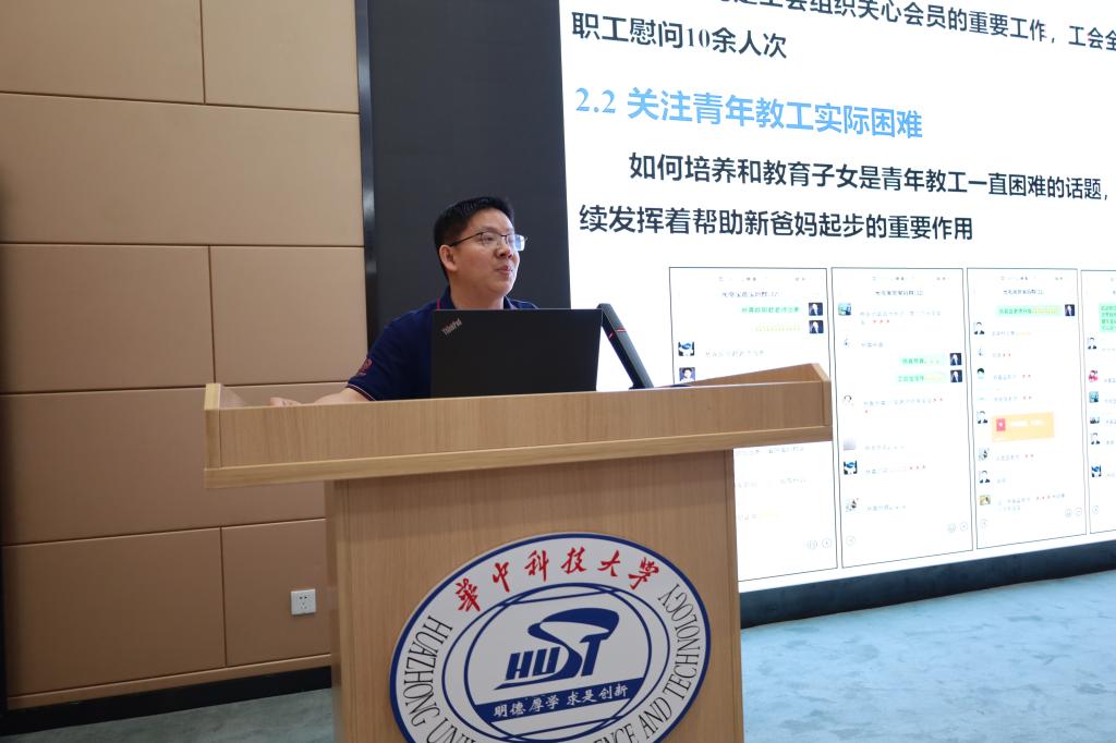 熊炫作工会工作回顾、他从学院工会人员结构、民生慰问、文体活动等几个方面详细总结了学院2021年学院工会工作的基础,提出williamhill中文工会工作规划。