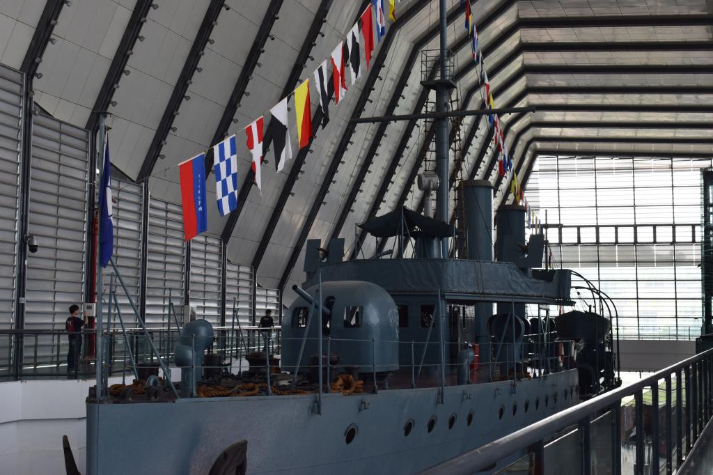 在文物陈列室,以孙中山先生的视角展示了那个可歌可泣的伟大时代的点点滴滴。从普通的报刊书籍、生活用品到武器装备和舰体设施等,每件经历了时间沉淀的文物都为我们讲述着那个时代和那些英雄的故事,激励着我们要艰苦奋斗,磨炼自身意志。