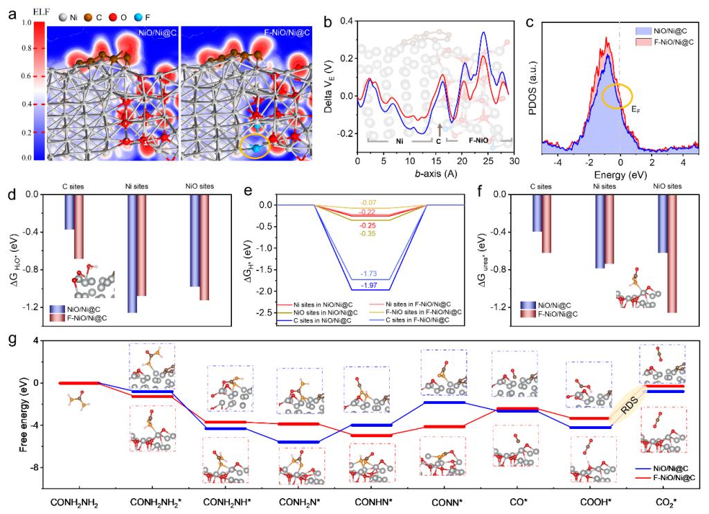 图2.氟掺杂提升NiO/Ni@C催化活性的机理解析。