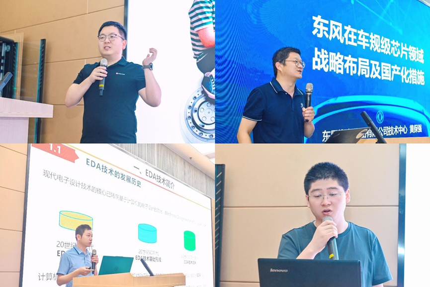 开幕式结束后进入学术汇报环节,由4位国内知名企业专家代表和2位优秀研究生代表分别进行了主旨报告。华为上海海思人力资源部专家杨超向与会师生介绍了国家前沿智能芯片发展情况,并展示了万物互联的智能终端如何铸就智能时代的基石。东风技术中心芯片技术专家黄保强向与会师生介绍了目前汽车行业的芯片发展情况,并详细讲述了东风芯片的战略布局及国产化措施。九同方微电子有限公司技术总监吴志桥则向大家介绍了射频电路EDA的国内外现状,阐述电磁仿真在射频电路设计中的作用。九峰山实验室专家刘捷龙博士向与会师生介绍了氮化镓(GaN)射频器件、模型及工艺设计套件(PDK)的相关技术,并针对射频器件的问题介绍了相应的解决方案。