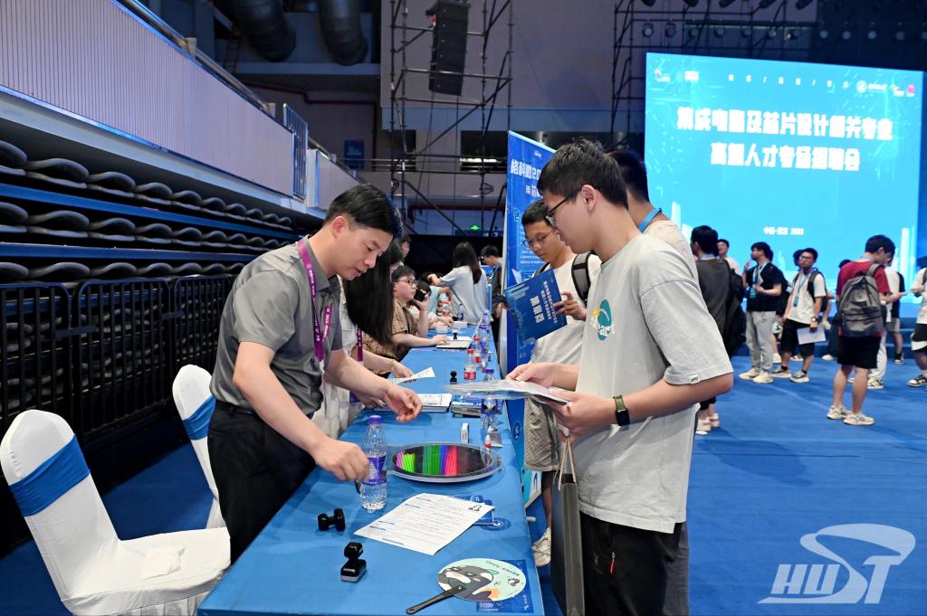 人才集市暨集成电路及芯片设计相关专业高端人才专场招聘会吸引近40家全国优质集成电路企业。其中约一半企业来自武汉本地,有16家企业来自中国光谷。企业代表面向参赛硕博士选手现场招才引智。