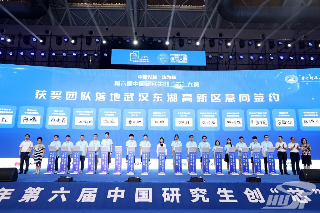 武汉光谷人才集团与16支一等奖以上获奖队伍代表签约,为获奖选手来汉发展定制专项人才支持政策,提供全方位服务保障。