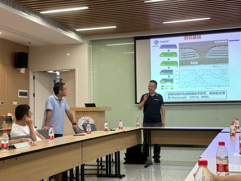 王德强研究员随后介绍了目前测序技术的国内外现状以及面临的困境,提出了以纳米孔技术为核心的下一代基因测序方法。同时结合课题组近期取得的一系列成果,将理论与实际结果相贯通。基于固态纳米孔的单分子检测的关键是由孔的直径和膜的厚度决定的传感区域,他介绍到可以通过利用单原子厚的2D材料如单层石墨烯和二硫化钼,来制备有高空间分辨率的纳米孔结构,并最终实现单个碱基的区分。