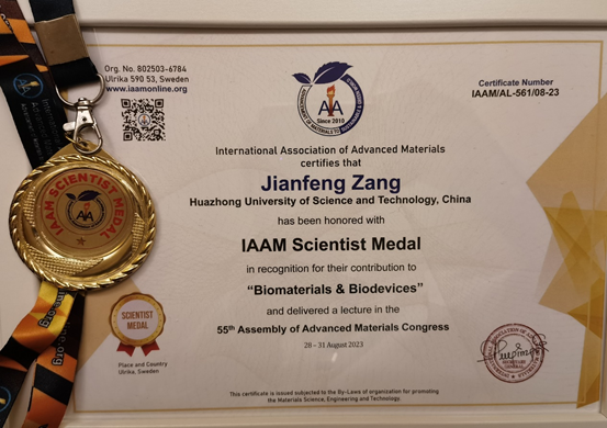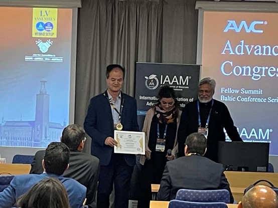 由国际先进材料协会(International Association of Advanced Materials, IAAM)主办的第55届国际先进材料大会(Advanced Materials Congress)8月28日至31日在瑞典首都斯德哥尔摩举办。我院臧剑锋教授荣获由大会授予的年度科学家奖章(IAAM Scientist Medal),以表彰其在生物材料和生物器件领域的杰出贡献,并应大会主席Ashutosh Tiwari博士邀请,在国际先进材料学会会士峰会(IAAM Fellow Summit)作先进材料专题报告(Advanced Materials Lecture),并邀请作为分会主席主持功能材料分会场。
