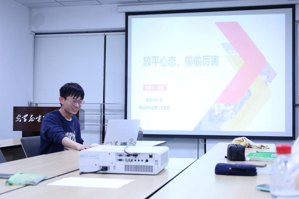 接下来,来自20级微电子2003班的朱晴学姐和杨家旺学长、以及20级集卓2001班的戴军学长分别向大家分享了他们在大学学习过程中积累的宝贵经验。朱晴学姐鼓励同学们发挥优势、明确目标、平衡好学习生活和课外生活;杨家旺学长分享了课内外学习和保研的相关经验;戴军学长则勉励大家调整心态、敢于尝试、厚积薄发。分享内容涵盖了科研竞赛、学习方法、时间规划、人际交往等方方面面,为同学们指明了前行的方向,激励着大家勇往直前。