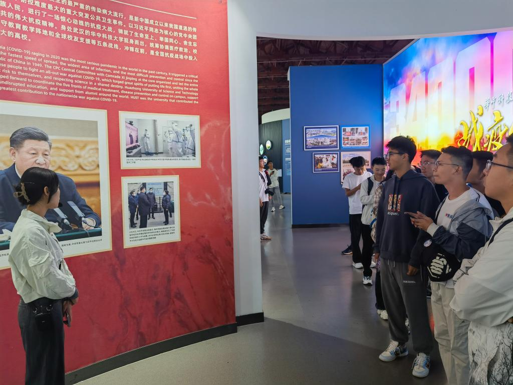 “我校在新中国的朝阳中诞生、在共和国的旗帜下成长、在改革开放中腾飞、在新时代迈向世界一流……”,在讲解员的介绍中,校史故事历历在目。置身于肃穆而充满历史感的校史馆中,同学们通过听讲、观展、阅读等方式,沉浸于校史学习的浓厚氛围中。通过厚重校史的动人故事,复刻还原的真实情境,同学们感受到一代代华科大人的热血与拼搏。