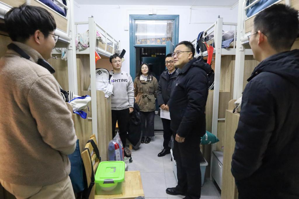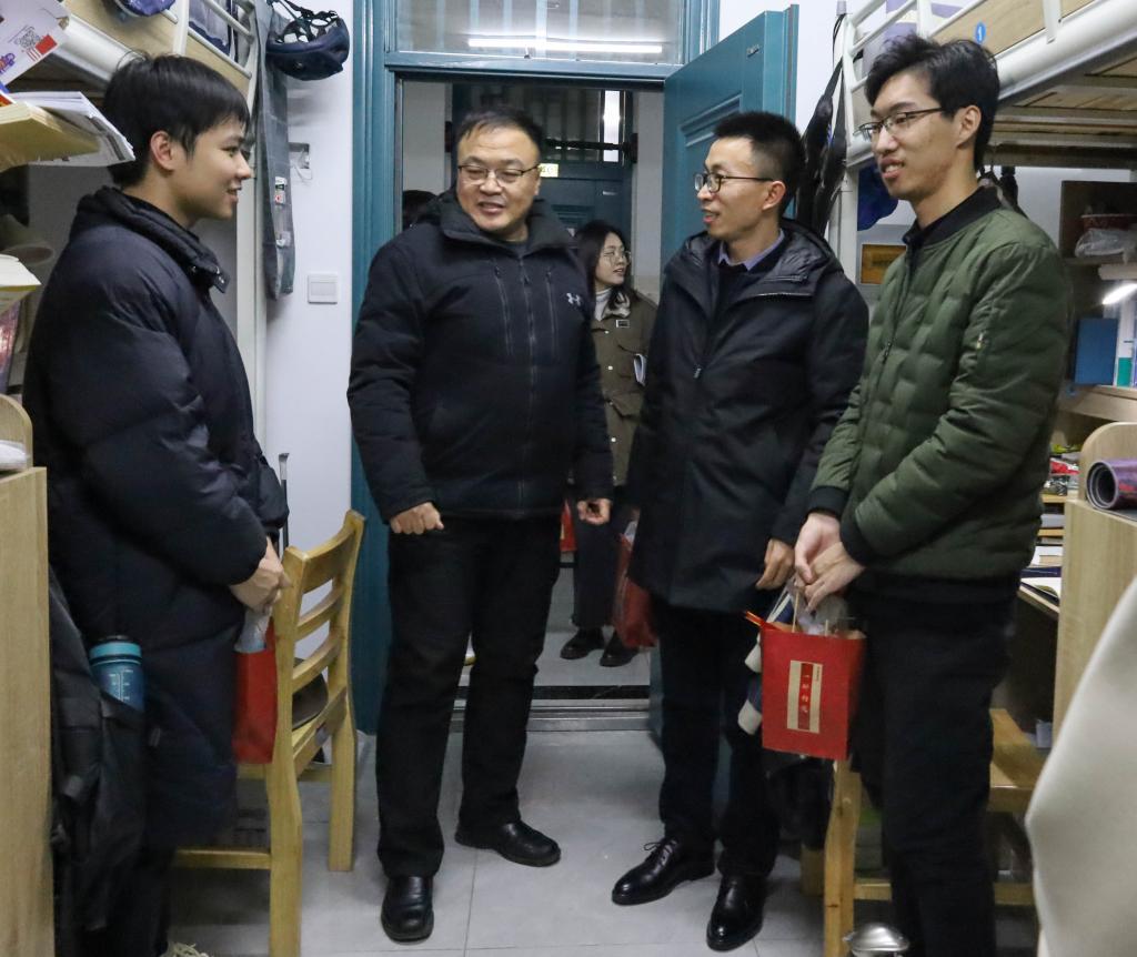12月20日,学院党委书记刘红军,院长缪向水,党委副书记、副院长雷鑑铭,副院长李祎,党委副书记姜波深入走访新博士生公寓,为新博公寓的同学们送上牛奶等慰问品,并与同学们热情交流,倾听同学们的需求,叮嘱同学们注意添衣保暖。学院研究生辅导员参与本次走访活动。