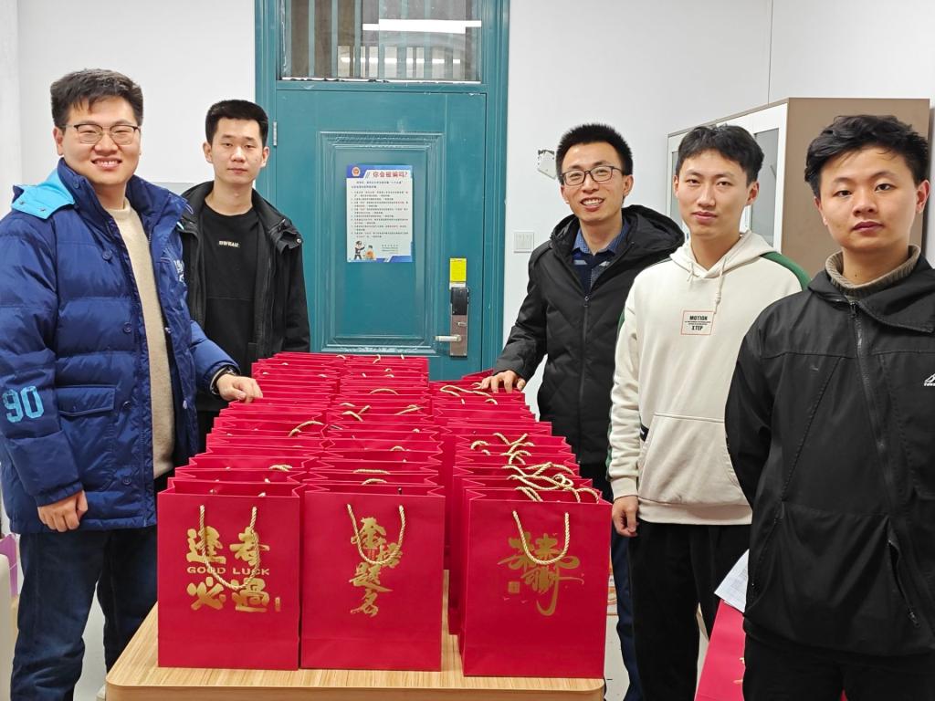 12月8日,学院党委副书记姜波、辅导员田子昂及年级学生骨干还为考研学生送去了学院准备的考研文具礼包,为同学们做好服务保障工作。