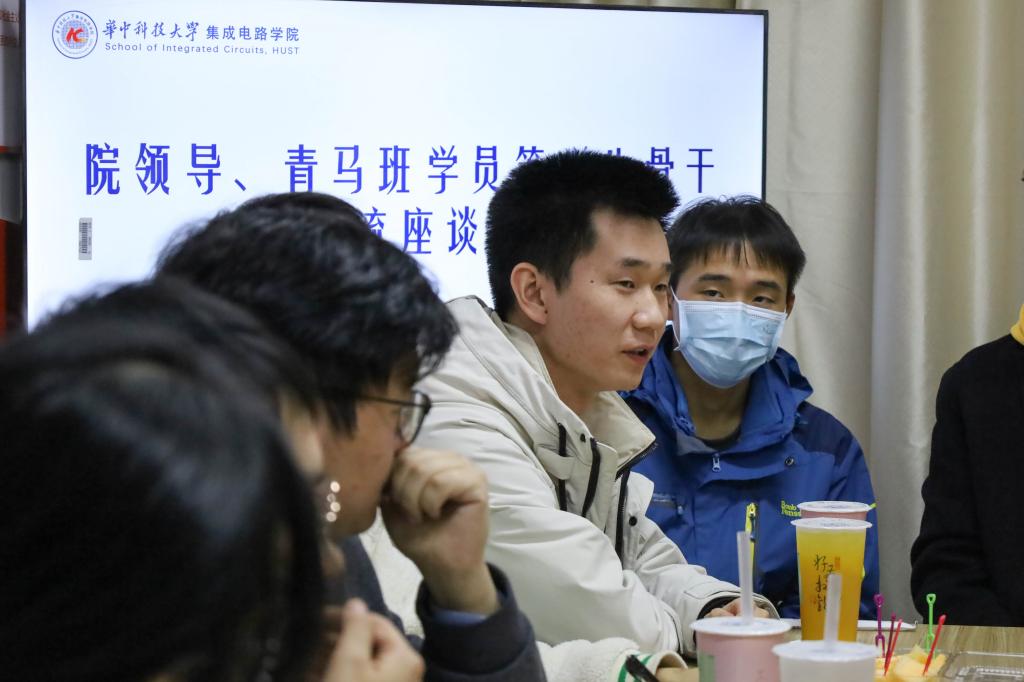 湖北省青马班学员、本科21级学生杨广艺从自身学习体会出发,谈及在学院逐渐独立运行过程中对课程设置的想法,他希望之后能够让更多的课程从大一就进行针对性的调整,让学习进度与个人发展更加契合。对此,缪向水院长和雷鑑铭院长向同学们详细阐释了学院人才培养思路,对“一生一芯”计划、赛课结合和双创中心基地建设等培养方案做了细致讲解,帮助同学们从更多维度寻找个人发展方向。