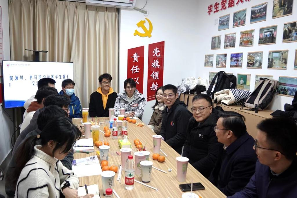 (通讯员:费靖 田子昂 杨傲寒)为落实立德树人根本任务,加强学院学科建设,了解学生需求,12月20日晚,学院领导与青马学员等学生骨干在韵苑7栋学生社区开展座谈交流。学院党委书记刘红军,院长缪向水,党委副书记、副院长雷鑑铭,党委副书记姜波以及各年级辅导员参加座谈。座谈由学院团委书记刘伊琳主持。