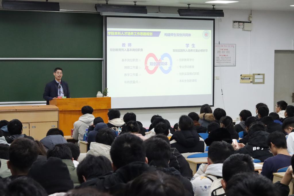 雷鑑铭教授从威廉概况、学科架构、人才培养、行业发展等方面进行了介绍,尤其对创新创业支持体系做了细致讲解。雷鑑铭寄语2023级新生从大处高处着眼,从小处低处着手,主动学习、紧张工作、取得实实在在的收获,力争实现学而有思、思而有行、行能有果、果自生趣、趣而有成。