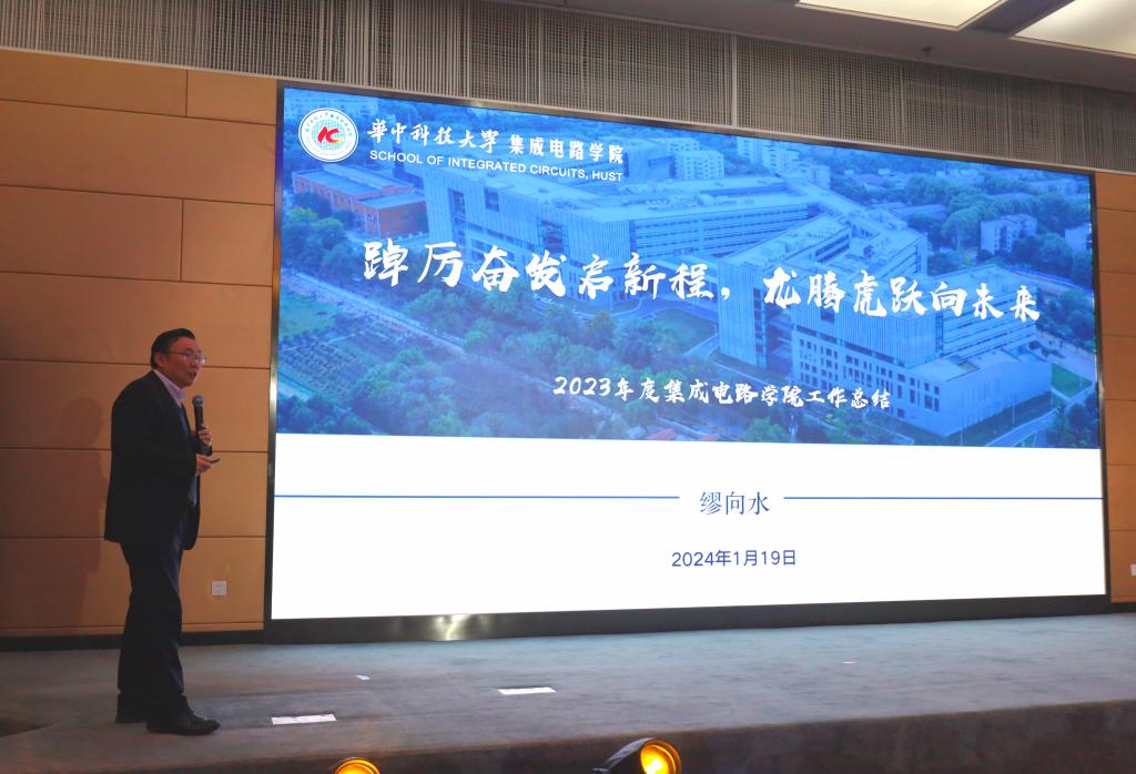 会议伊始,院长缪向水向全体教职工作2023年工作总结。他指出,在过去的一年里,学院坚持以高质量党建引领高质量发展,紧扣立德树人根本任务,不断提高人才培养质量,搭建了“一基五系”思政工作体系,打造了“芯”系列思政文化品牌,构建了基于“一生一芯”的多方协同育人生态;学院通过加强有组织科研创新,不断推进更高水平科技自立自强,获批国家williamhill中文;学院深化国际交流,重启爱丁堡联合办学项目,为高质量开放办学不断迈出坚实步伐;学院全体教职工和谐友爱,携手共进,积极组织丰富多彩教职工、退休老同志活动,营造关心、暖心、齐心干事氛围。