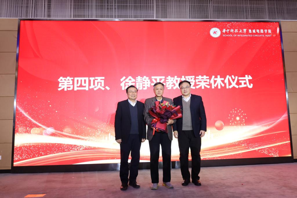 大会随后举行了徐静平教授荣休仪式,学院党委书记刘红军、院长缪向水徐静平教授献花祝贺。