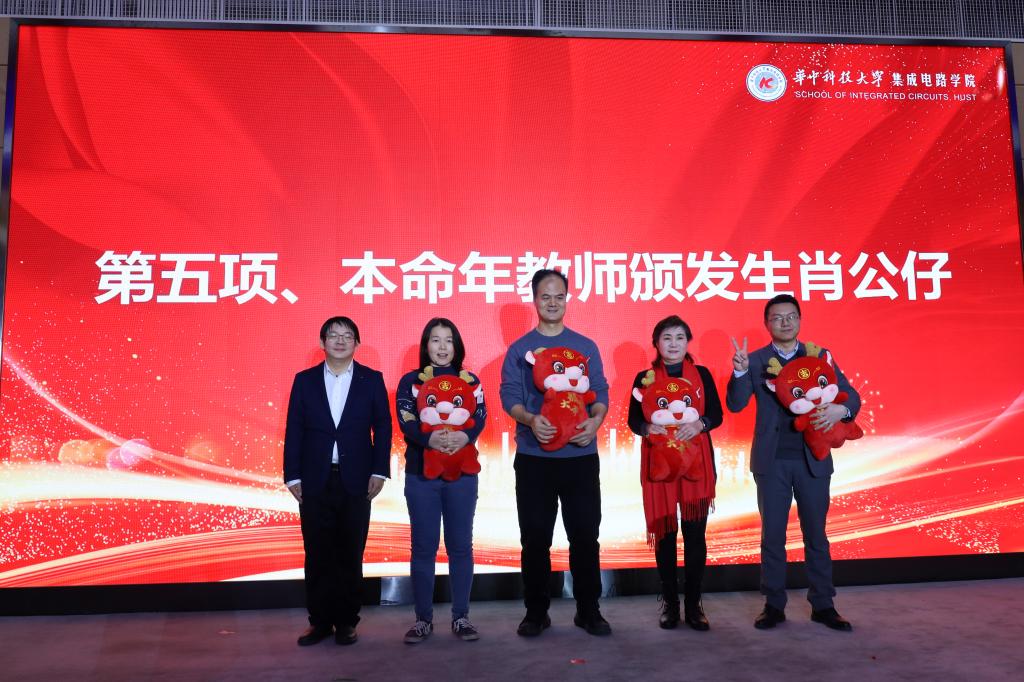 学院工会主席熊炫为2024年本命年教师赠送生肖公仔。