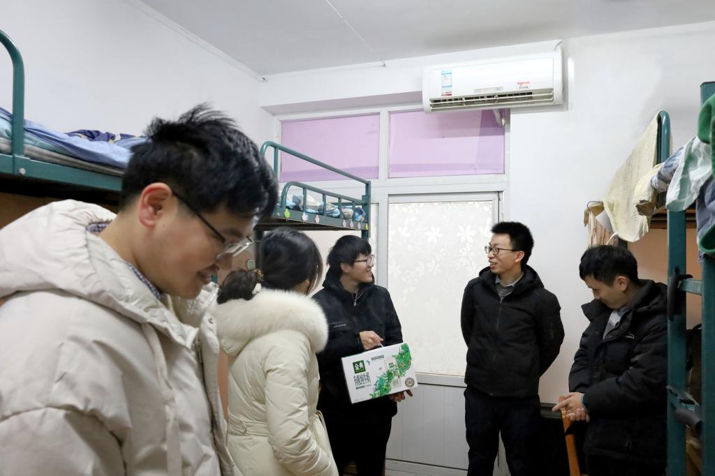 走访期间,姜波还为同学们送上了学院准备的牛奶等慰问物资,祝福同学们小年快乐,同学们纷纷表示非常惊喜和感动。