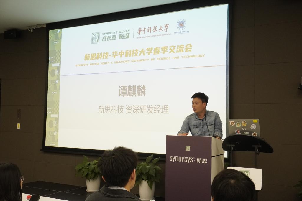 参观完毕后,新思科技武汉资深hr向大家介绍了新思科技武汉的主要业务构成以及招聘计划,并从人事招聘的角度解答了大家关于求职流程与内容的疑惑。新思科技武汉资深研发经理谭麒麟向大家讲述了自己在数字IC研发领域耕耘数十年的经历与感想,他鼓励同学们身为研发工程师要不怕吃苦,必须坐得住冷板凳,敢于探索与创新,勇于挑战自己,不断学习更前沿的技术。资深研发工程师、我校校友钱雯向同学们详细介绍了自己在模拟设计领域的研发方向,以及从华科成长成才的求学经历,激励同学们要珍惜在校时光,积极进取。资深研发工程师、我校校友王佳军向同学们分享了自己入职后生活上的体验,丰富了同学们关于入职工作生活的见闻。