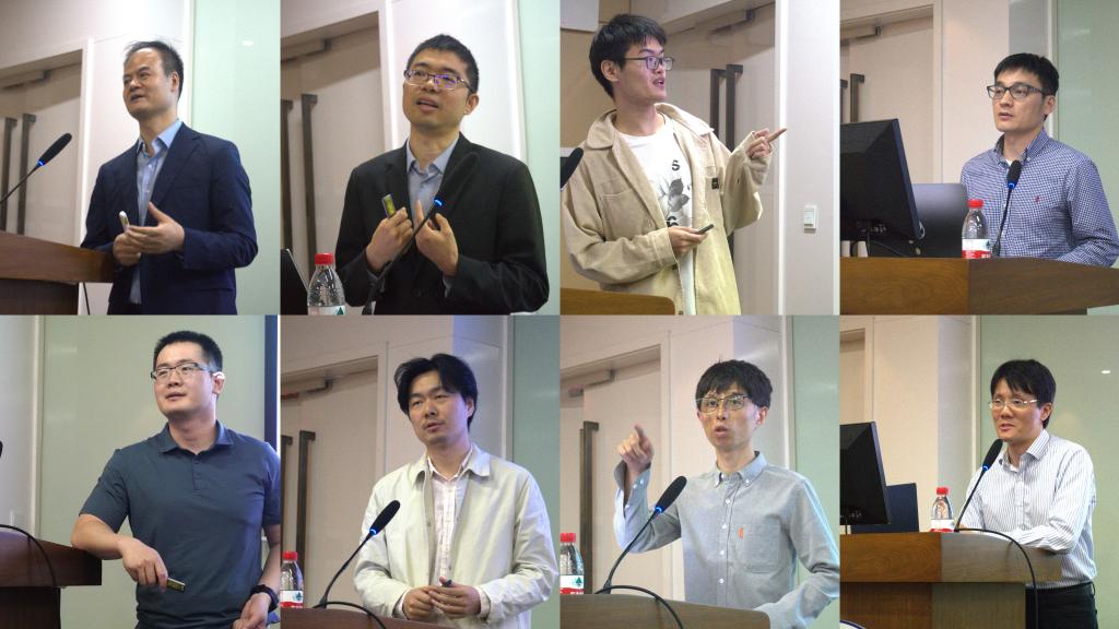 从事医工交叉方向研究的八位专家分别就自己的研究方向和研究成果作了专题报告。臧剑锋教授作了题为《基于智能软材料的创新医疗器械研究》的报告、吴豪教授作了题为《柔性混合电子设计制造及医疗健康应用》的报告、朱本鹏教授的研究生作了题为《超声定位显微成像技术》的汇报、马波研究员作了题为《CMUT技术及其超声诊断应用》的报告、赵精晶研究员作了题为《衍射结构光医学显微成像技术及其在相干光学层析和影像流式细胞仪中的应用》的报告、曾双双教授作了题为《基于纳米孔的DNA测序原理介绍》的报告、叶大蔚研究员作了题为《神经接口芯粒系统设计》的报告、李华耀副研究员作了题为《人体呼出气检测用电子鼻技术研究》的报告。