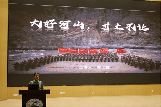 席佳鑫同学以“大好河山,寸土不让”为主题,将来自高原和边境的故事娓娓道来。极端艰苦的环境,严重的高原反应,却无法撼动边防军人们用生命捍卫国家领土的坚定信念和使命。