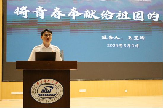 王宜卿同学以“将青春奉献给祖国的蓝色边疆”为题,分享了一段段来自南海之上的故事。风平浪静的南海之上却从不平静,军人们坚强、勇毅担当,在直面挑战中奉献青春以坚定的信仰、信念、信心守护国防安全给同学们深深的震撼