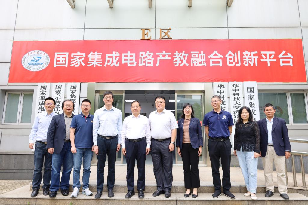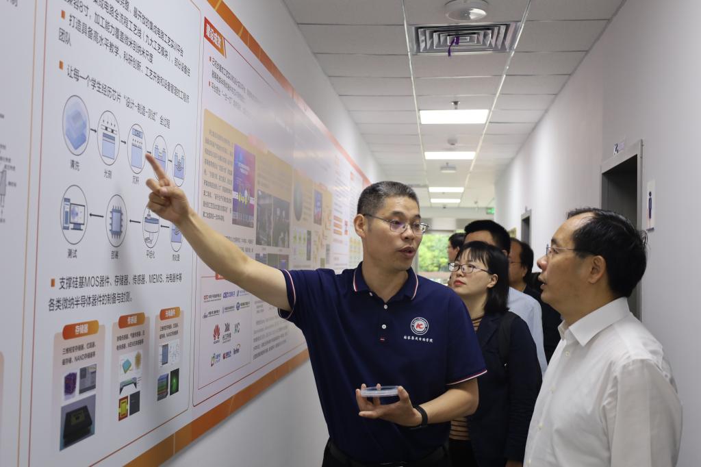 研讨会前,校党委副书记张耀一行在雷鑑铭的带领下观摩指导微电子工艺创新实践现场。