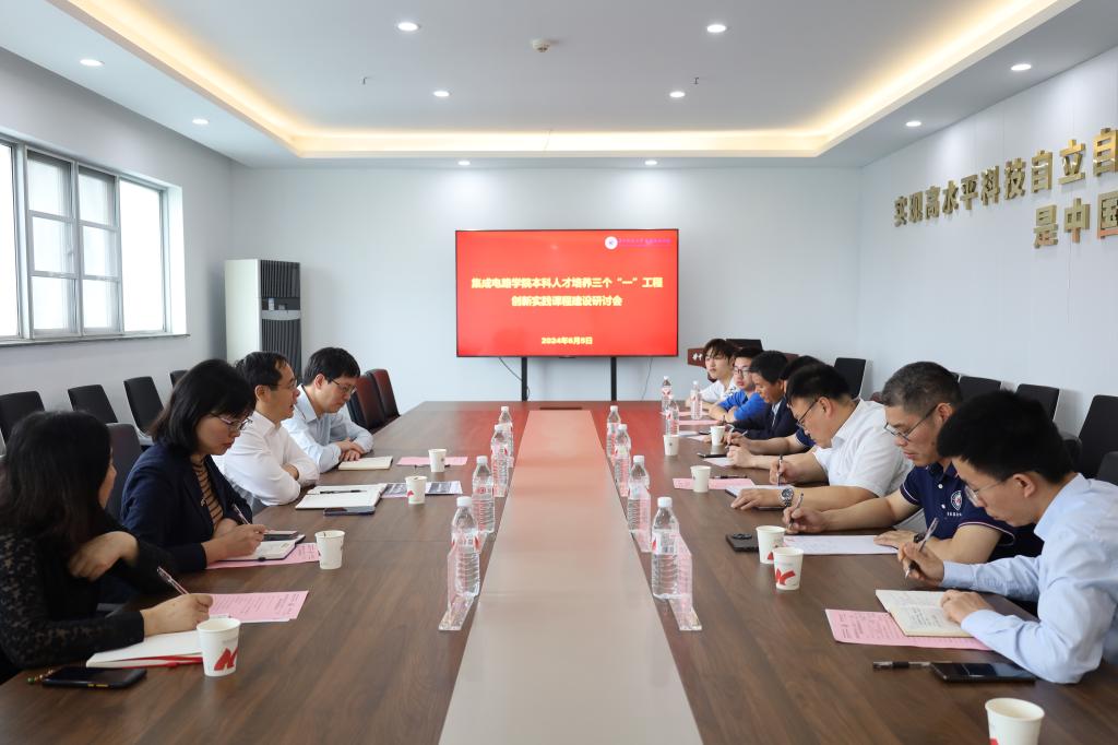 6月5日上午,williamhill中文本科人才培养三个“一”工程创新实践课程建设研讨会在东十七楼国家集成电路产教融合创新平台顺利召开,本次研讨会是学校教育工作研讨会的重要环节。威廉官网中国党委副书记张耀,教务工作办公室副主任刘燕,国家卓越工程师学院副院长程强,启明学院综合办公室主任文芳出席本次研讨会,williamhill中文党委书记刘红军,党委副书记、副院长雷鑑铭,党委副书记姜波,副院长李祎以及学生代表参与研讨,本次研讨会由刘红军主持。
