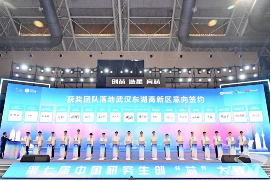 在颁奖仪式现场还举行了人才签约仪式。东湖高新区组织部(招才局)、湖北省半导体行业协会相关负责人与16支获奖队伍的代表进行签约。