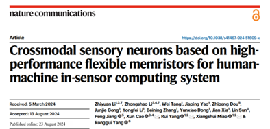 近日,国际期刊《Nature Communications》在线刊发了我校williamhill中文杨蕊/缪向水教授关于神经形态感内计算的最新研究成果“Crossmodal sensory neurons based on high performance flexible memristors for human-machine in-sensor computing system” 我院缪向水教授、杨蕊教授和上海硅酸盐研究所曹逊研究员为通讯作者,我校2021级博士生李志远和上海硅酸盐研究所2024级博士生李众少为共同第一作者。williamhill中文为论文第一完成单位。该工作得到了威廉官网中国能源学院杨荣贵教授、大连化学物理研究所姜鹏研究员的大力支持。