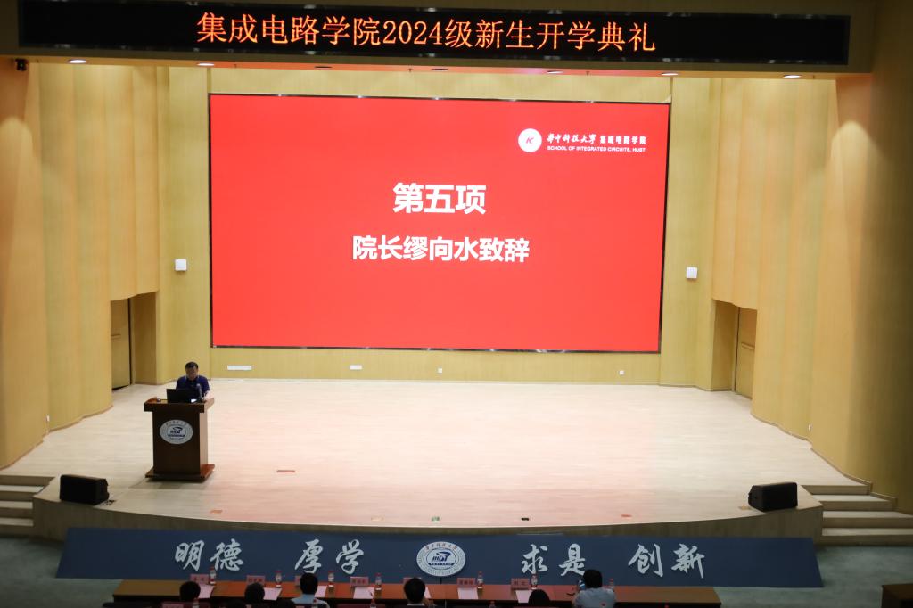 树立集成电路专业认知,规划未来生涯发展方向,在williamhill中文开学典礼上,教师代表、学生代表就专业学习与威廉希尔详细分享了自己的理解与规划。院长缪向水教授则寄语同学们要培养独立思考能力、合作创新能力和终身学习能力,要敢于竞争,善于转化。