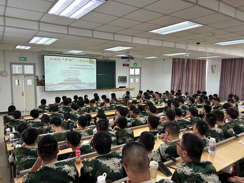 军训期间,学院组织集中观看“筑梦启航”安全主题教育,涵盖国家安全、网络电信安全、交通安全以及法治安全四个方面,在学生群体中牢固树立总体国家安全观意识。