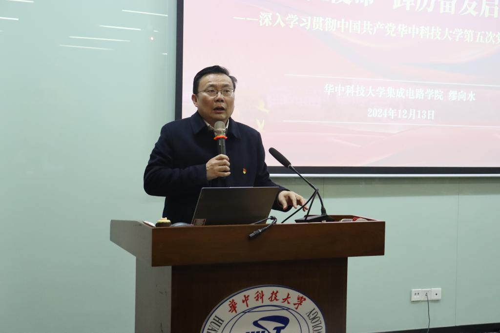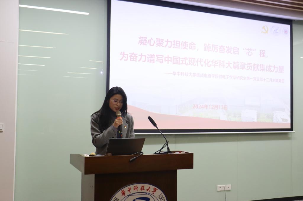 2024年12月13日,williamhill中文微电子学系研究生第一党支部开展12月主题党日活动,主题党日以“凝心聚力担使命,踔厉奋发启‘芯’程,为奋力谱写中国式现代化华科大篇章贡献集成力量”为主题。校党委副书记张耀参加活动。支部副书记孙佳艺主持活动。