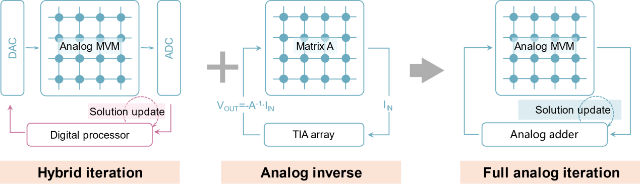 J. Li, Y. Xue, Y. Li, et al. Fully analog iteration for solving matrix equations with in-memory computing. Science Advances, 11, eadr6391, 2025.