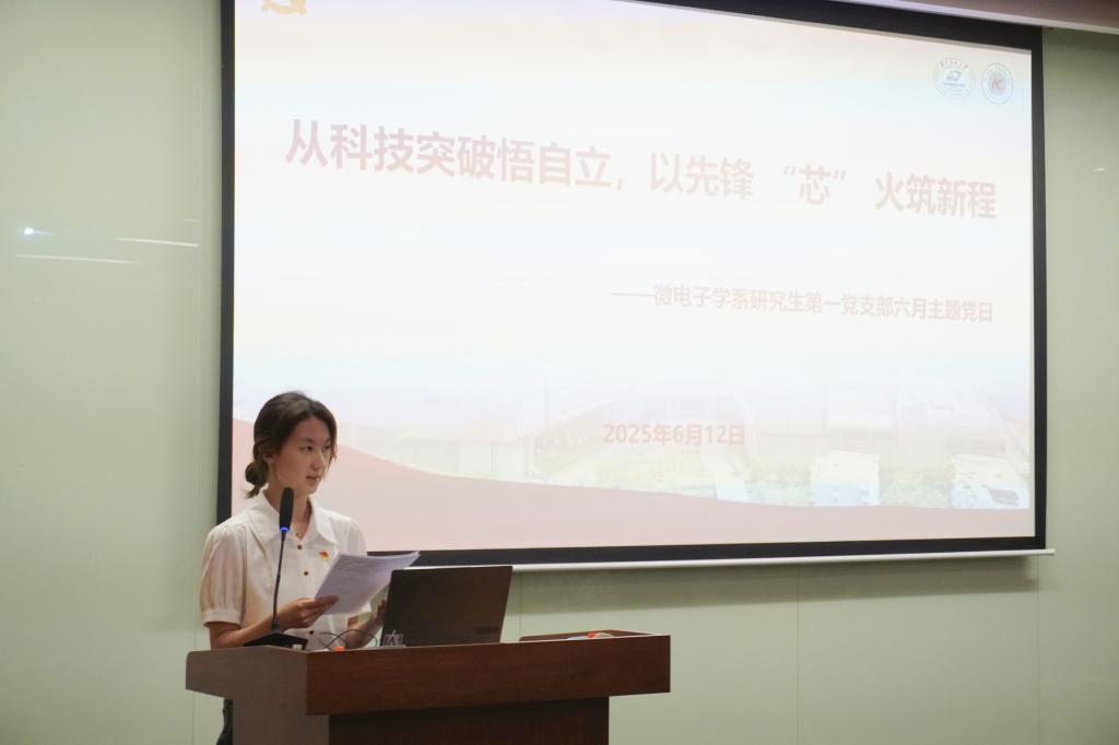 (通讯员:朱玉玲 徐志文 张雅茹)日前,williamhill中文微电子学系研究生第一党支部组织召开6月主题党日活动,本次活动以“从科技突破悟自立,以先锋‘芯’火筑新程”为主题,校党委副书记张耀参加活动,组织部副部长林岚、学生工作部研究生工作办公室副主任段政、谭静,williamhill中文党委书记刘伟、副院长、支部德育导师李祎、副书记姜波一同参加活动。支部党员张雅茹主持活动。