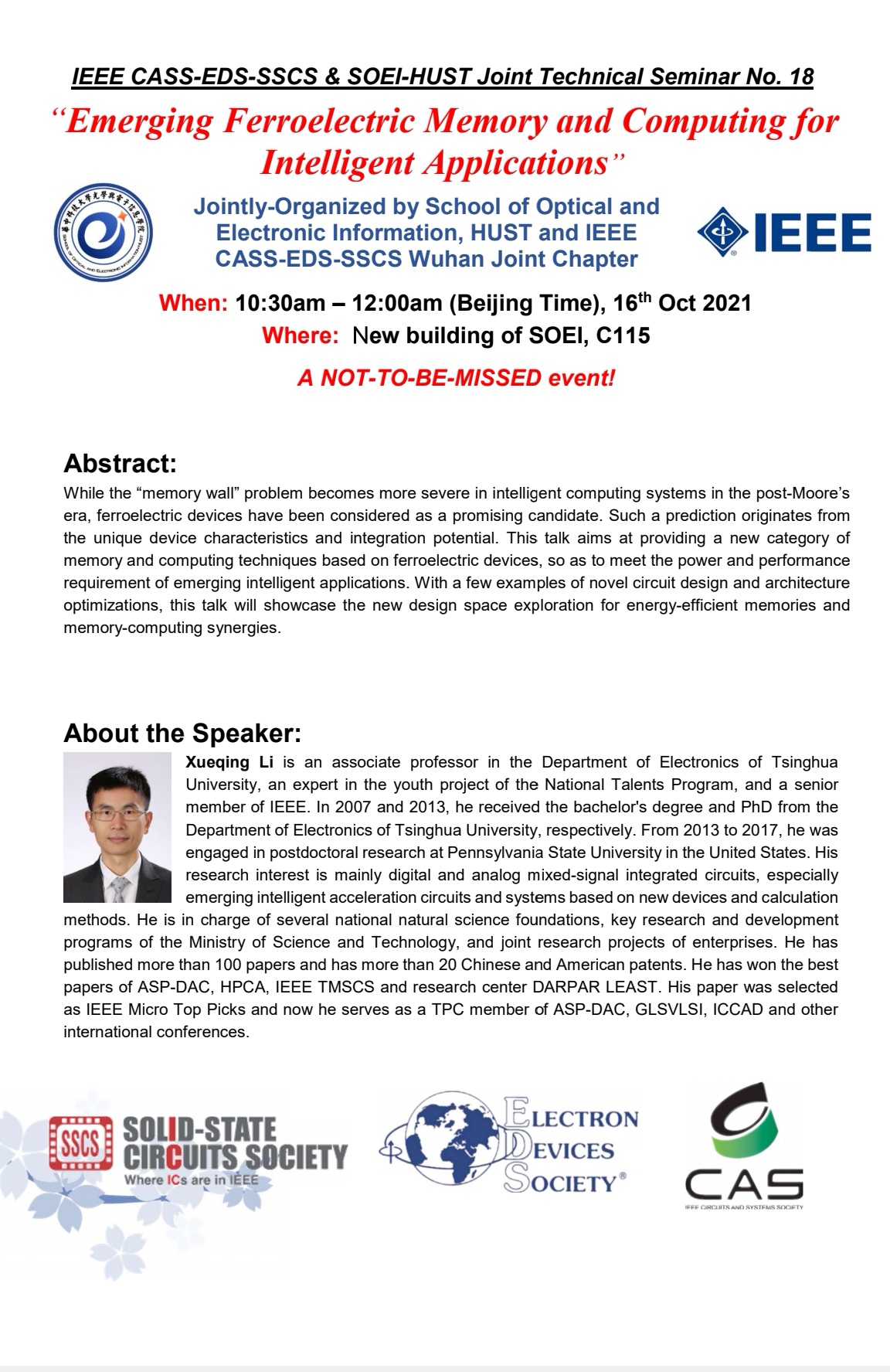 IEEE CASS-EDS-SSCS&SOEI-HUST joint Technical Seminar N0.18