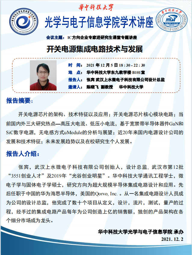 IC方向企业专家进研究生课堂专题讲座:开关电源集成电路技术与发展