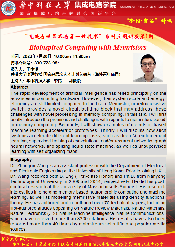 喻园•育芯讲坛第4期—“先进存储器及存算一体技术”系列主题讲座第1期:Bioinspired Computing with Memristors